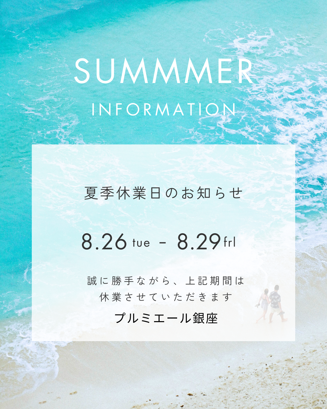 プルミエール銀座サロンの8月のキレイキャンペーンのご案内です♪